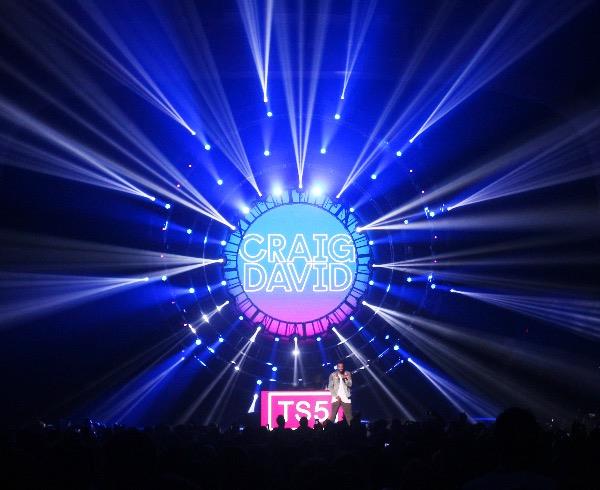 The TS5 show originated as a Sunday afternoon DJ party at the artist's Miami home, and now sees him DJ and MC and sing on stage. Abbiss says, "I based my design for this show on the cover artwork on Craig's new album,The Time is Now. The picture is of him and a large clockface, so I decided to reflect that circular image with my lights and truss."