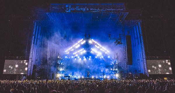Visual Endeavors’ design for the show is based around a 15’ x 15’ riser centre stage, with built-in lighting and lasers overhead, and one massive 50’ x 25’ upstage LED surface, as well as side IMAG screens. There are vertical towers flanking the stage, with large angled trusses overhead, loaded with fixtures.