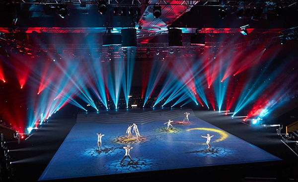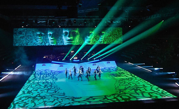 Burton and Saunders created more than 900GB of content for the 50+ different acts that took part. On top of this, they incorporated NOTCH real-time generated content with the BlackTrax vision-based system to track dancers and generate content on the fly. BlackTrax was supplied and integrated by Kyle Means from Visional Productions.