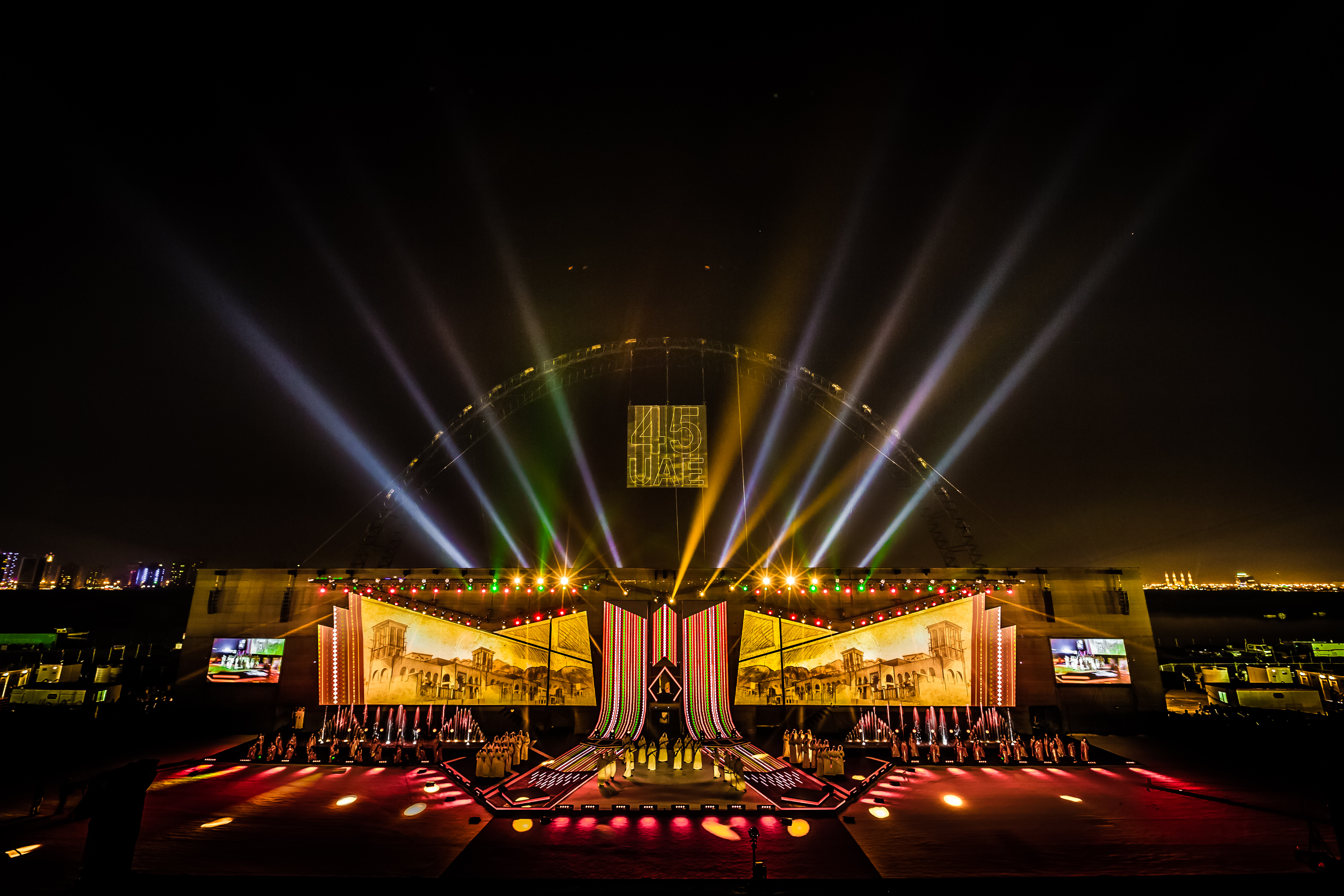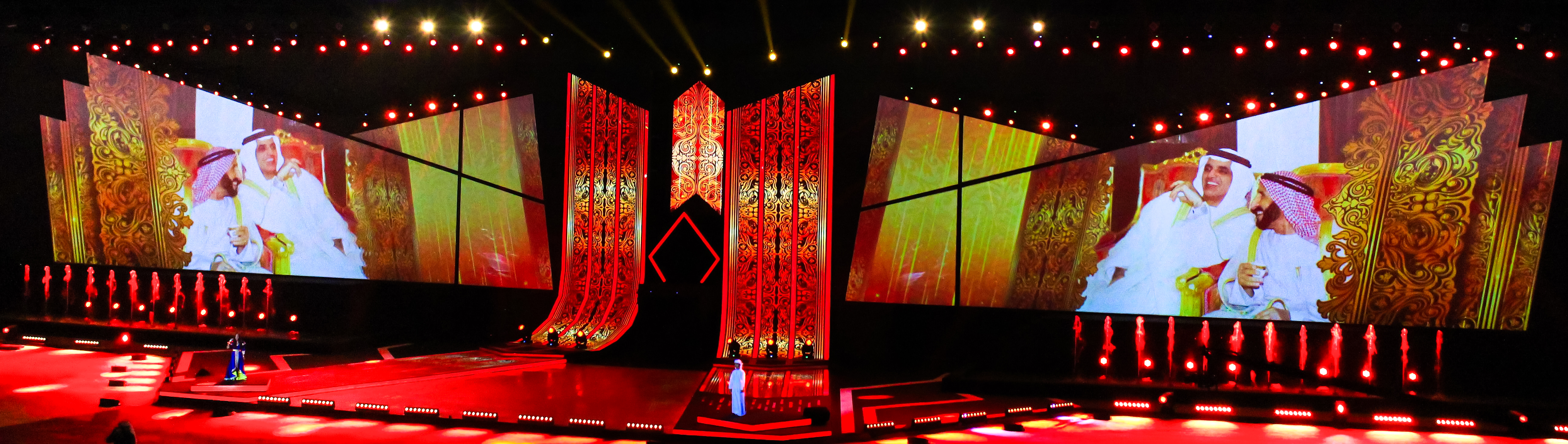 FakhrakYaWatan saw a total of 800 singers, dancers and actors perform 15 different acts on a large 88 x 12 metre stage. Seven screens hosted the dynamic backdrop of LED and video mapped projection that complemented the diverse range of performances.
