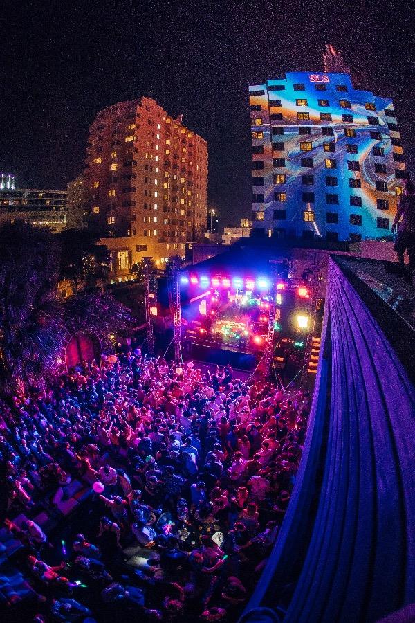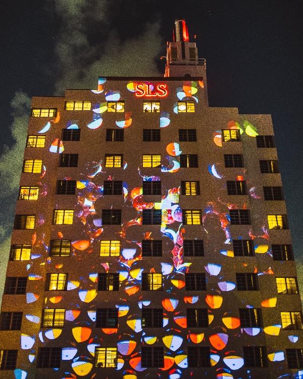 “We had the great honor of projection mapping the SLS Hotel on South Beach, Miami for their amazing pool party during Miami Music Week this year. The city was alive, Ultra Music Festival was in full effect just a few miles away and pool parties were happening all along the beach. Our challenge was to create the largest video screen in the entire city, to do this we knew our best option was with an Ai and Blender 3D workflow. Ai to map and serve the content and Blender to create the 2K, custom mapped content.