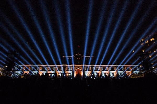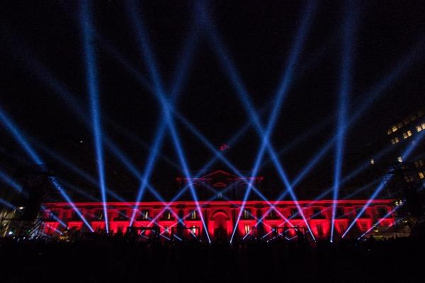 The lighting designer Erasmo Cubillos had the challenging task of illuminating the front of the Government Palace of Chile as well as the truck which hosted the musicians and actors. The illuminated trucks were representative of the history of Chile, and as they were mobile, had to be controlled wirelessly.