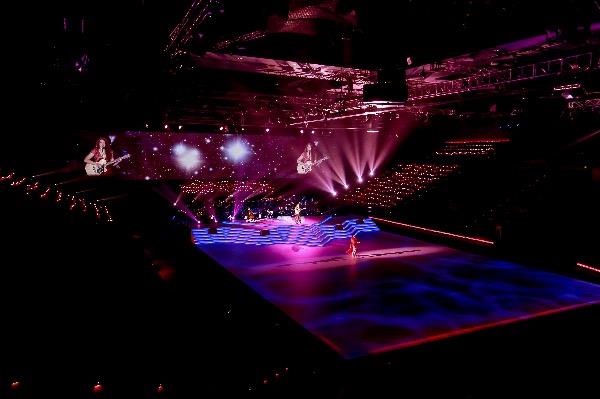 “We used a lot of timecode integration so we could synchronize video playback with lighting, automation and the live bands running click track,” says Burton. “We had a mix of playback as well, including free run content that integrated with the timecoded sections.”