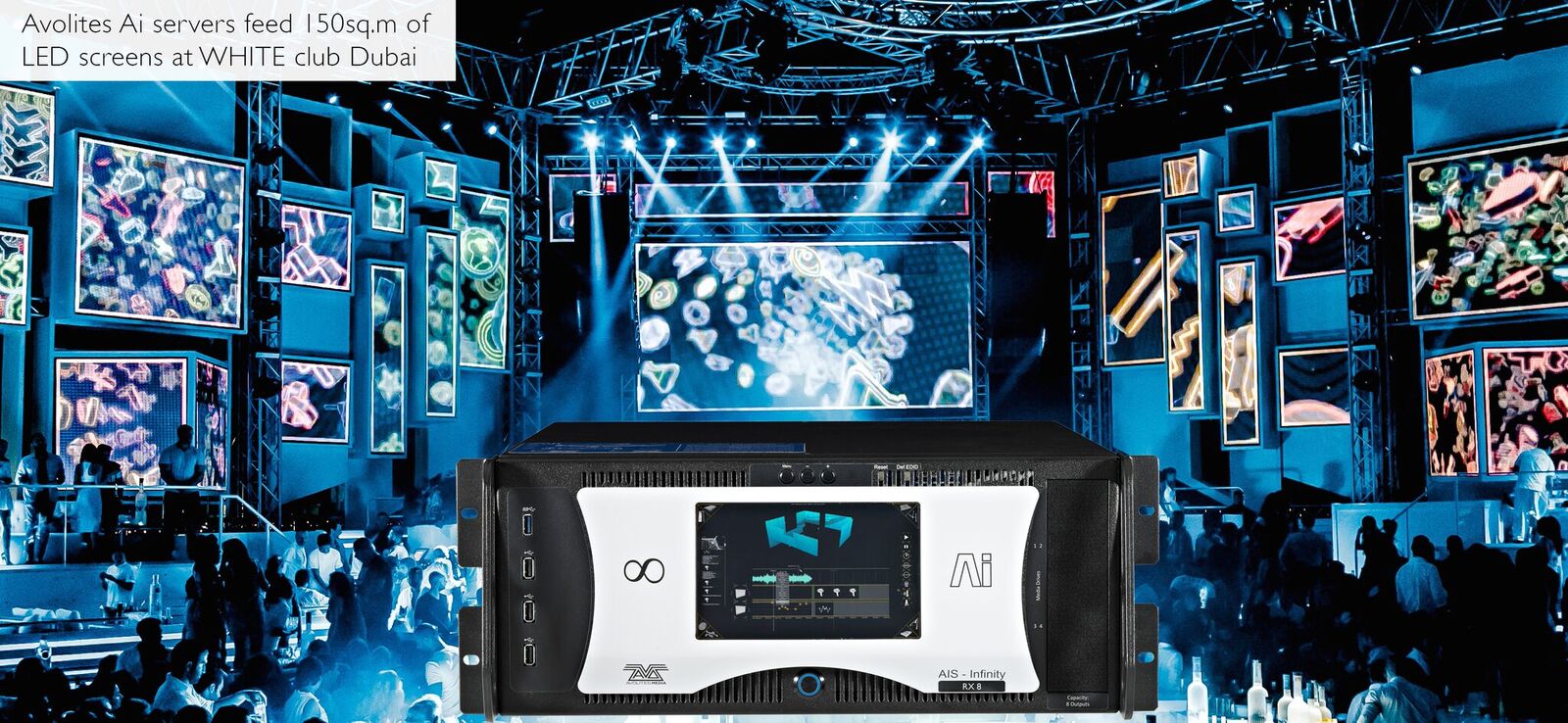 The Ai R Series is Avolites’ most powerful range of media servers to date, and comprises the Ai Infinity R4, Ai Infinity R8, Ai Infinity Rx4 and Ai Infinity Rx8. All servers in the range take advantage of the increased speed and power of the latest processors, solid-state drives and AMD graphics cards.