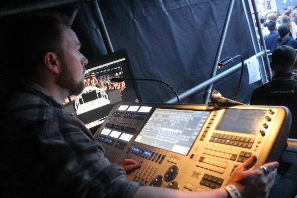 Fellow lighting designer Tom Campbell assisted JP in programming and operating an adapted version of the design for the Somerset House set. The designers utilised an Avolites Arena console, one of the two house consoles provided by the venue to visiting lighting designers.